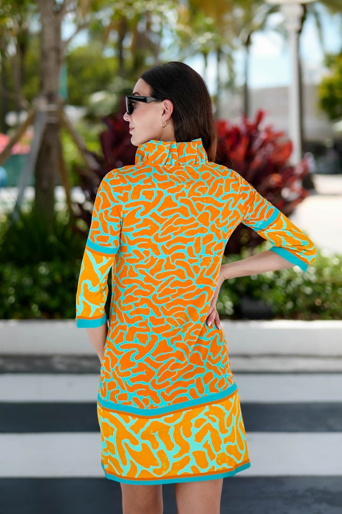 Featuring a one-of-a-kind print and a whimsical ruffled collar, this shift silhouette dress exudes sophistication and style. Experience the luxury of owning a piece that beautifully blends comfort and elegance.