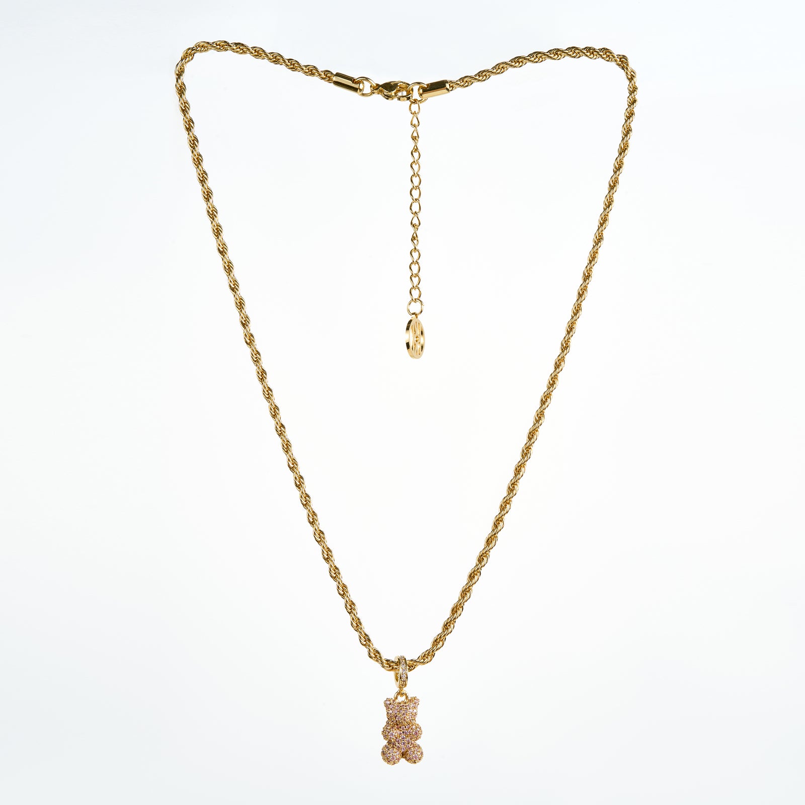 Teddy Bear Necklace, Gold/Pink