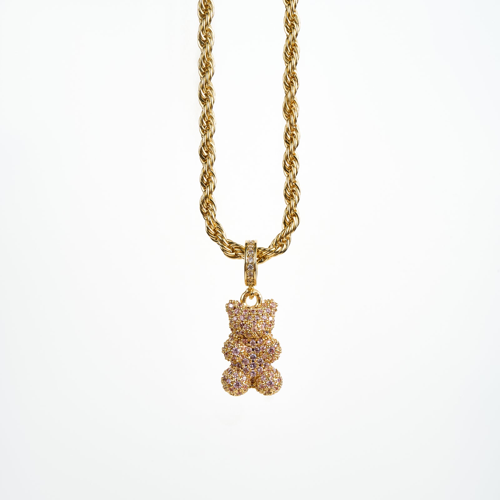 Teddy Bear Necklace, Gold/Pink ACCESSORY - NECKLACE jeanpierreklifa.com