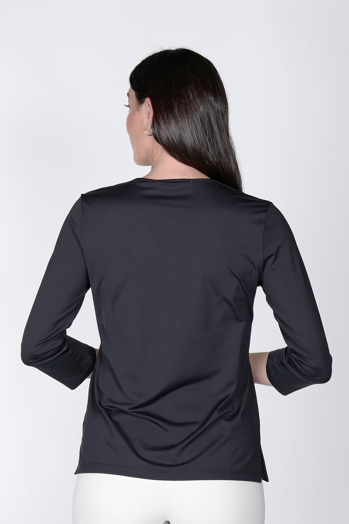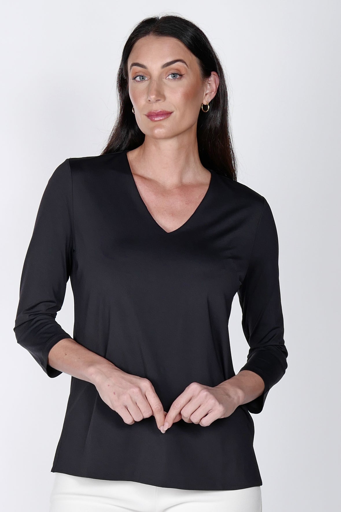 V-Neck Solid Top Black APPAREL - TOP - SHIRT jeanpierreklifa.com