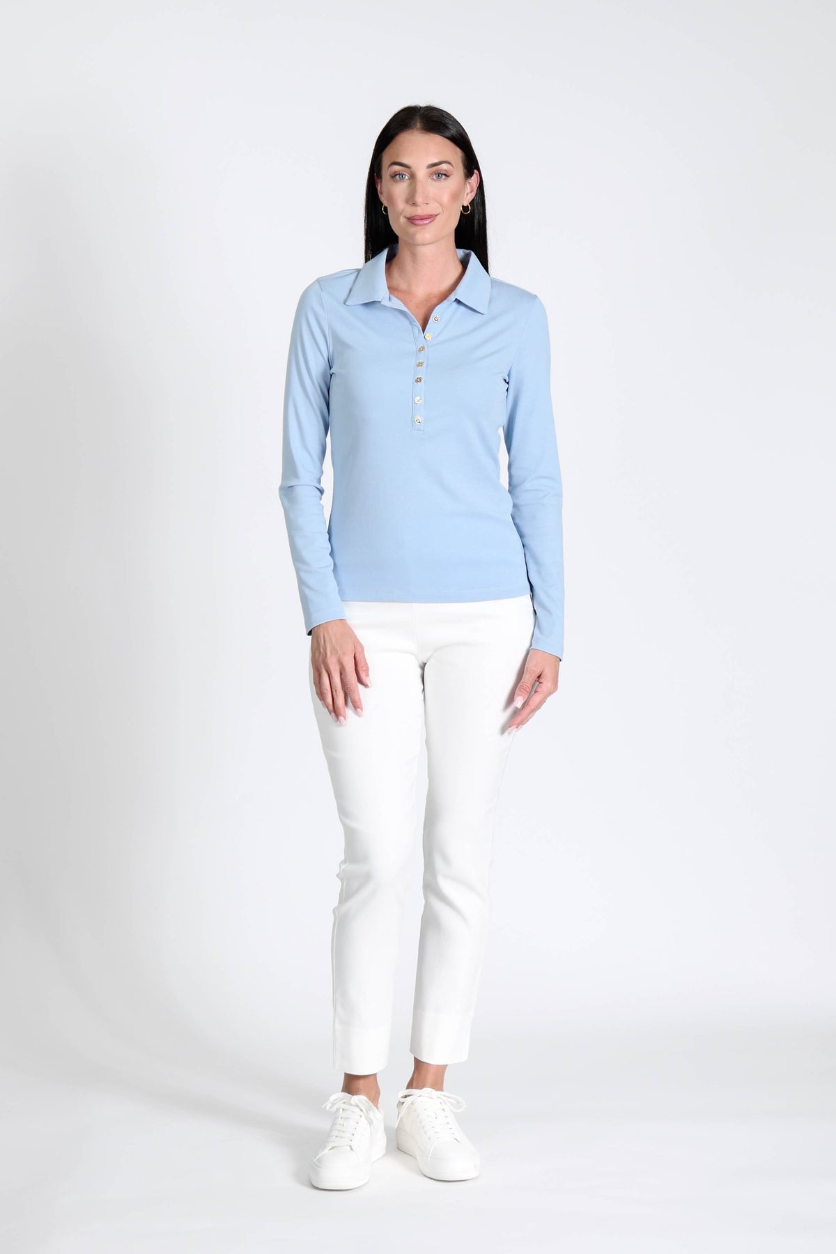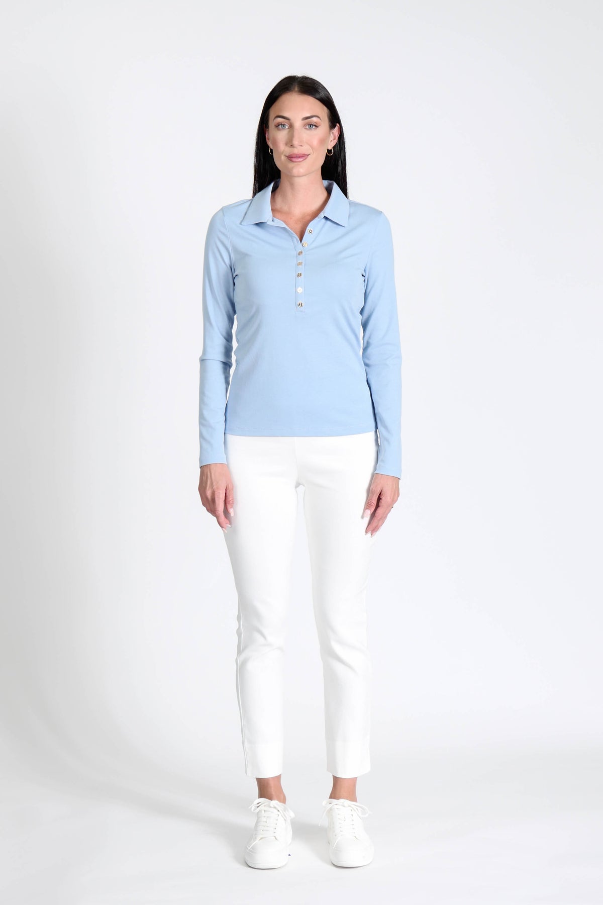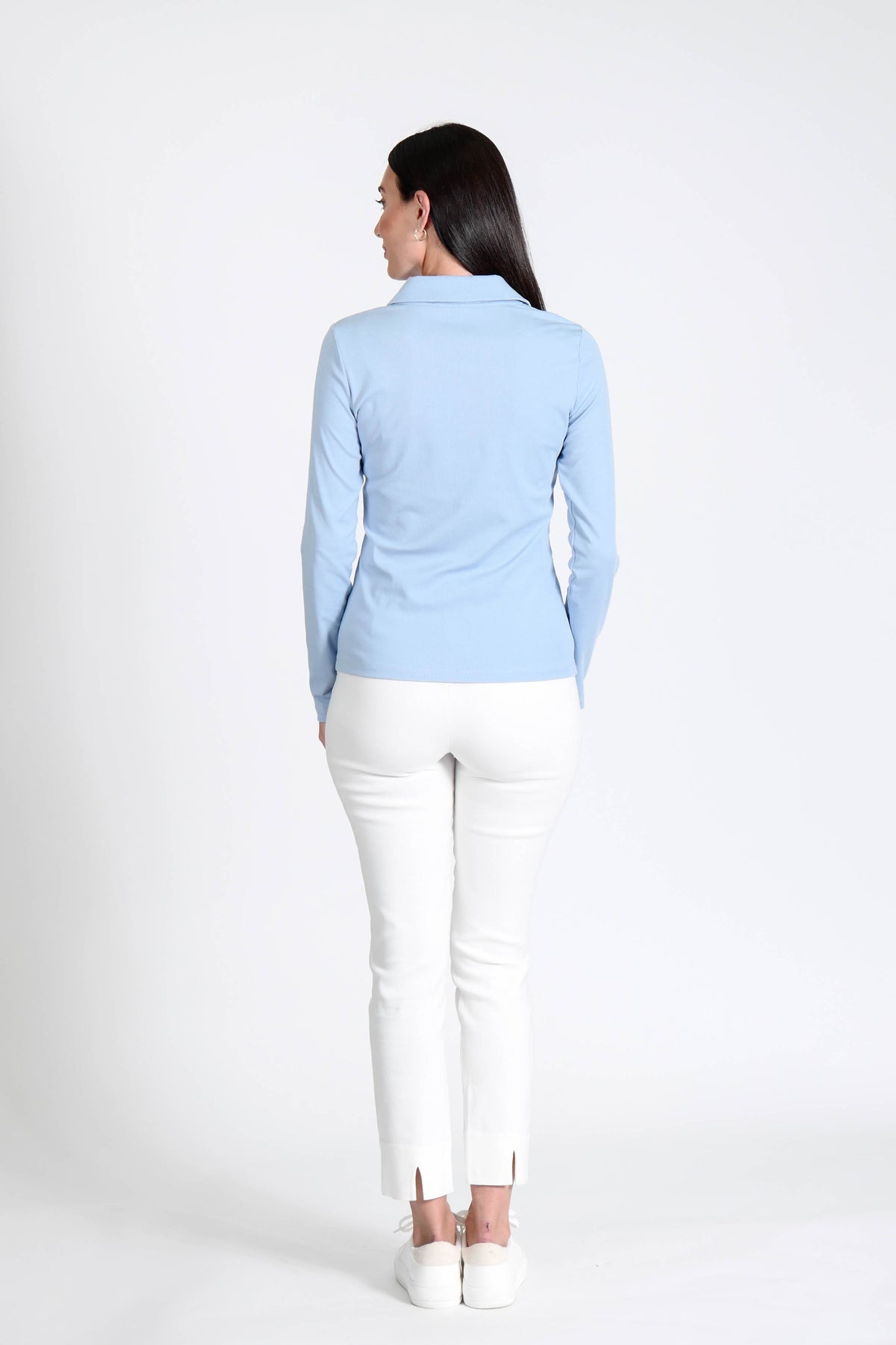 Like all JPK designs, the Court Top Peri effortlessly combines timeless elegance with modern ease. Crafted in a silky-soft stretch fabric, this long-sleeve button-up top flatters the silhouette with a tailored fit and a polished collar that adds just the right touch of sophistication. Its clean lines and versatile design make it the ideal piece for an elevated casual look, perfect from tennis session to coastal getaways.