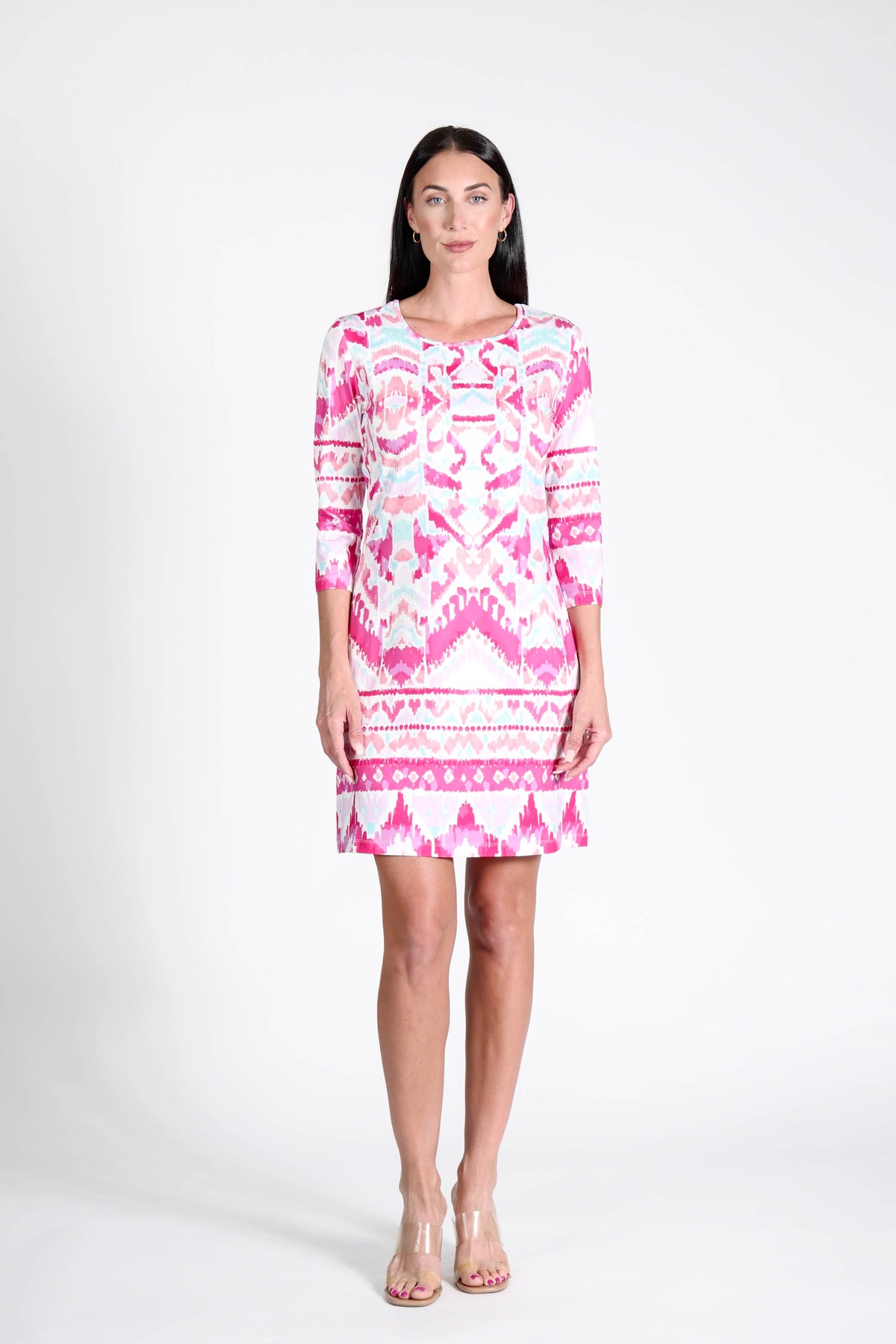 Daphne Dress Ikat Fuchsia blends French design with a timeless, feminine silhouette. This go-anywhere short dress is perfect for cocktail moments and everyday elegance alike.