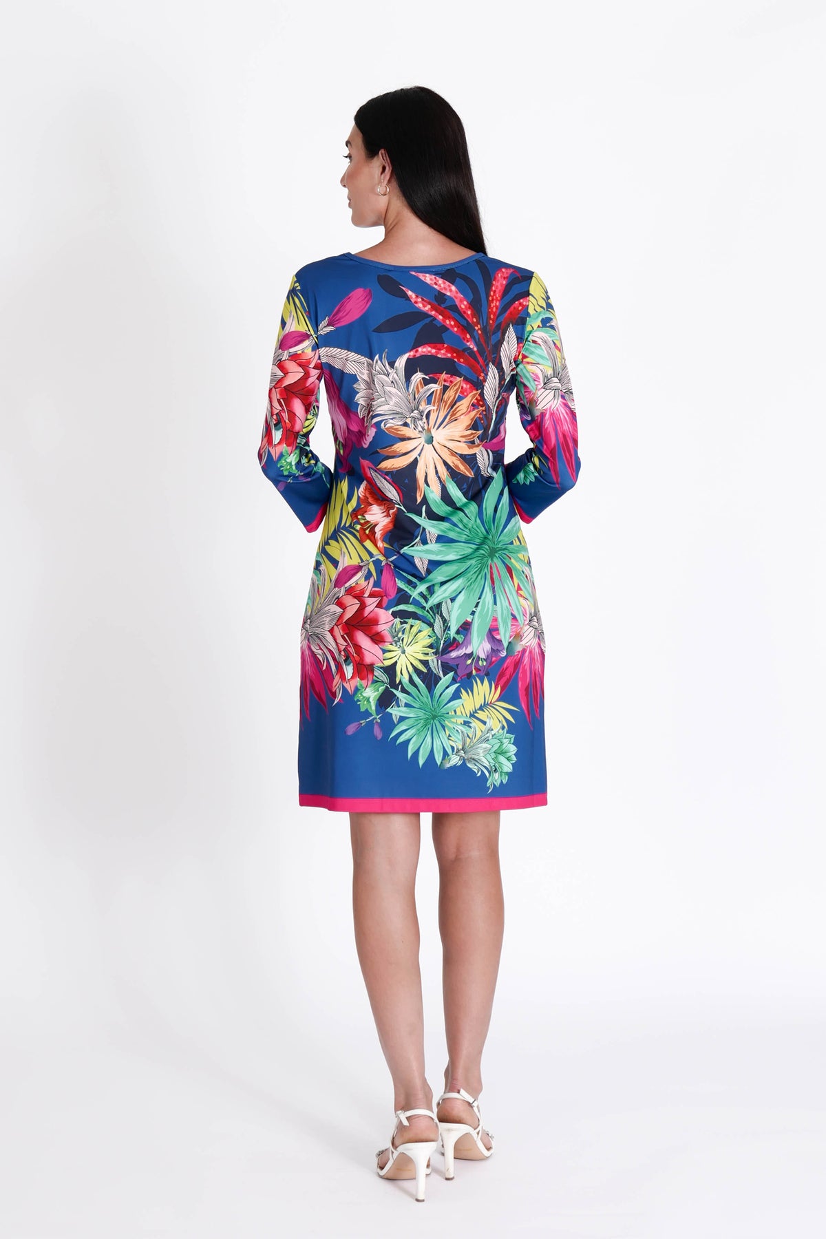 Daphne Dress Pacific Island — French design meets timeless elegance in a short dress that is equally comfortable and on-trend. Crafted from a light, ultrasoft polyester/spandex blend, this piece moves with you for all-day ease and a flattering fit.