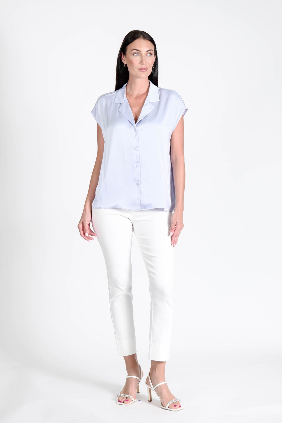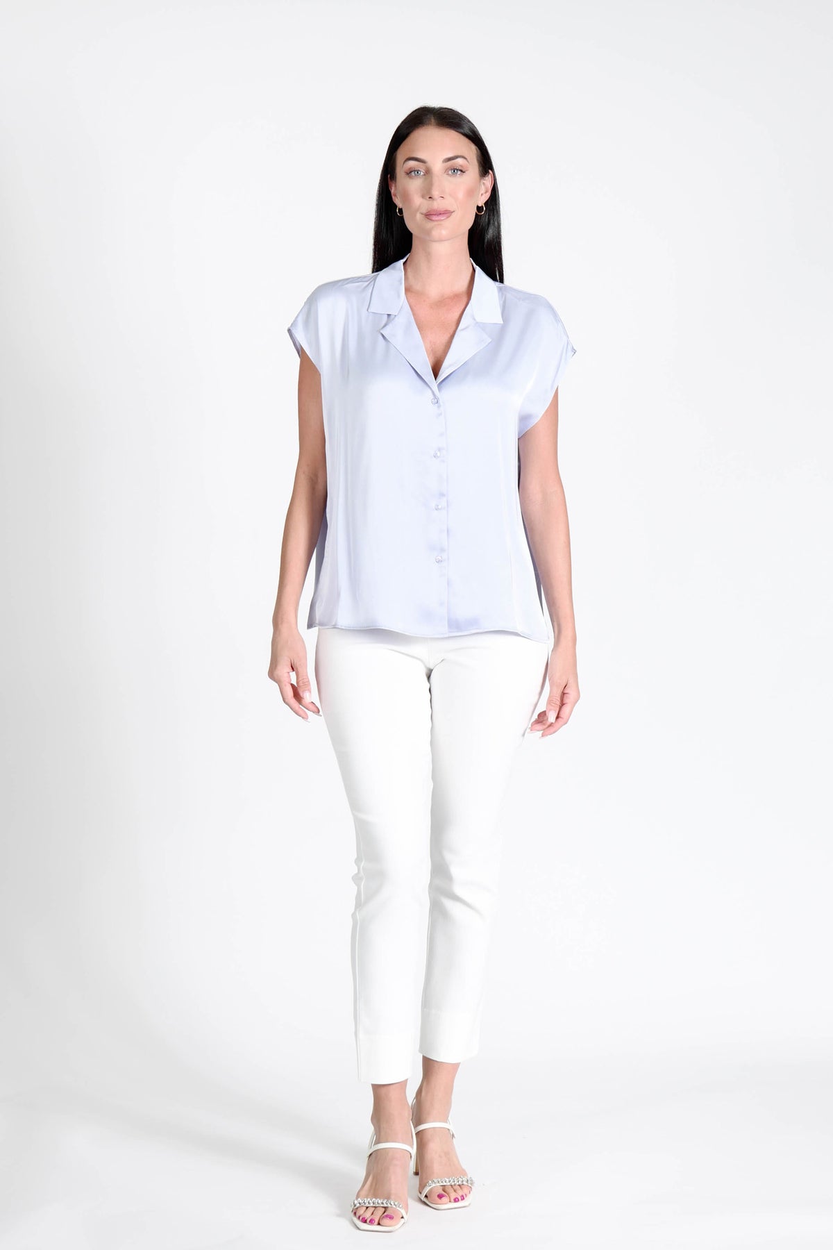 Fluid and lightweight, this short-sleeved, button-down shirt is all about elegance. Wear it indoors or out, and it'll add style to any occasion.