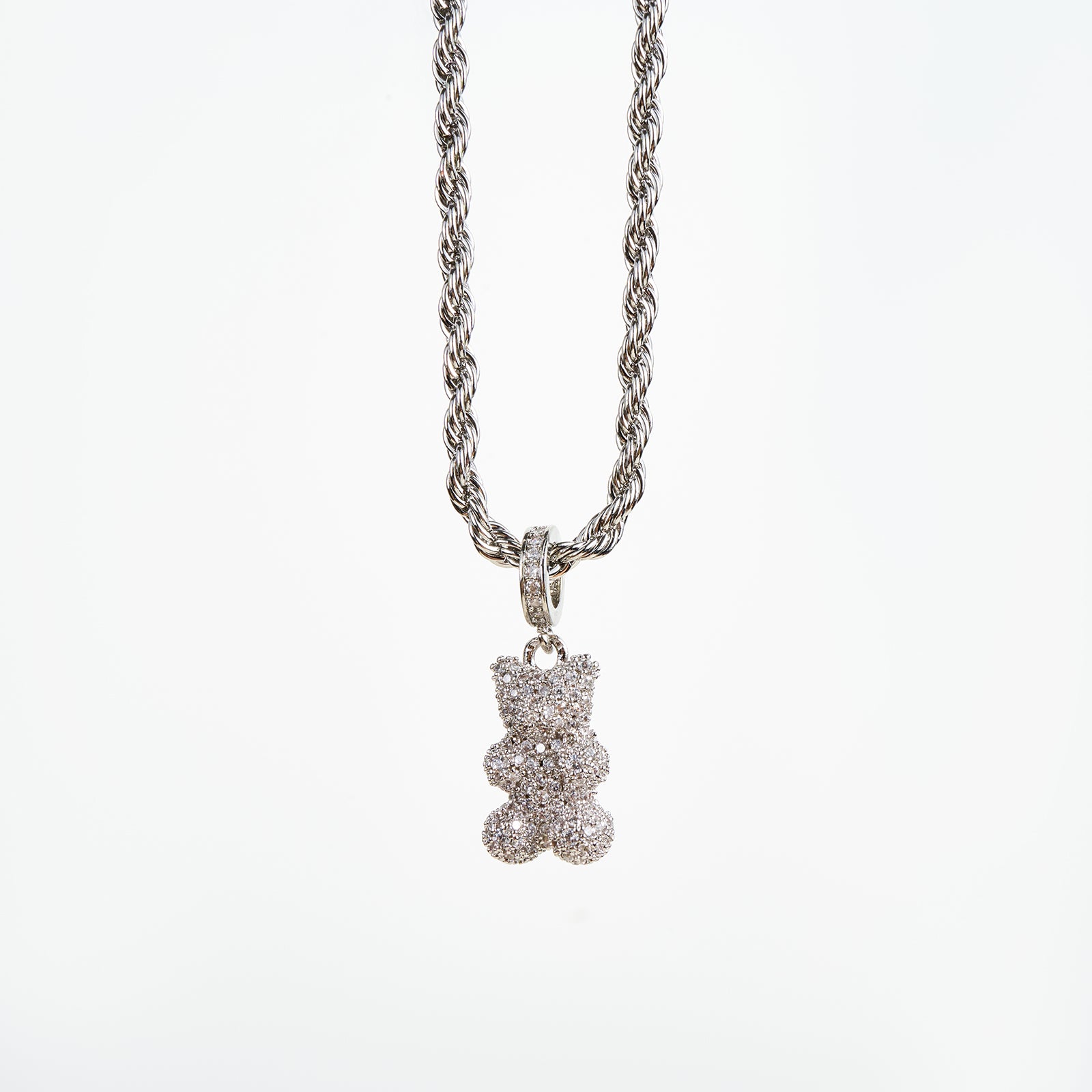 Delicate teddy bear pendant suspended from a refined chain, crafted with rhodium gold plating for enduring brilliance. The soft pink accents complement warm gold tones, creating an understated yet charming piece. Rhodium plating provides superior tarnish resistance and a lustrous finish that maintains its polish over time. Perfect for layering or wearing solo, this necklace bridges playful sentiment with elegant sophistication—an ideal gift for those who appreciate whimsy paired with refined craftsmanship.