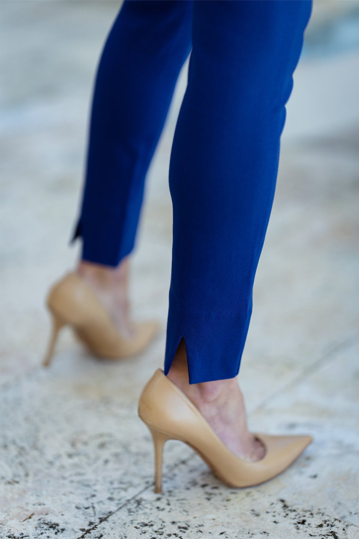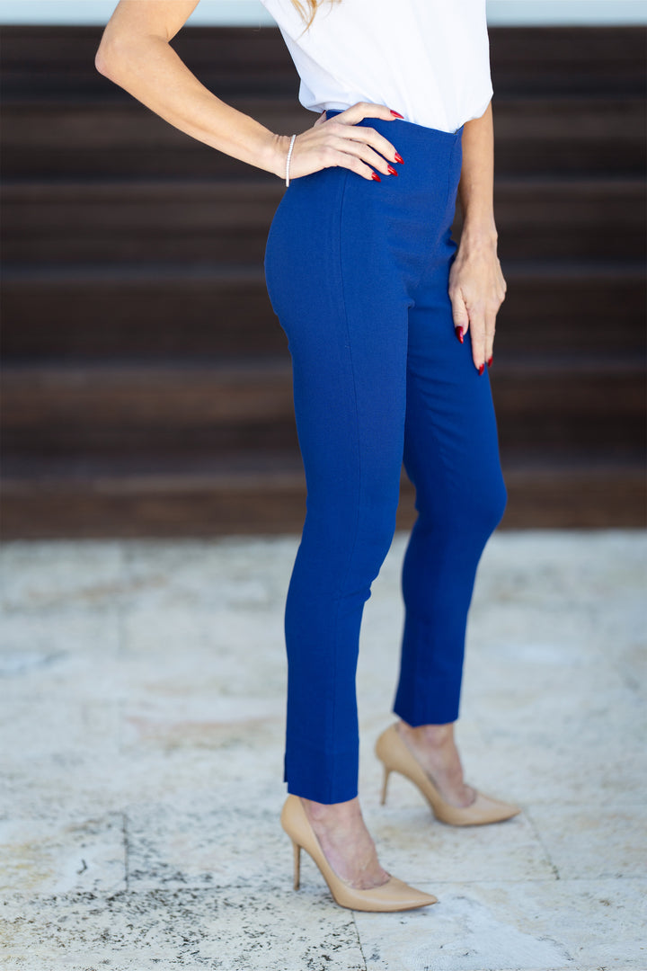 The Jackie pant is the ultimate universal pant. It features a 4-way stretch material that makes them oh-so comfortable. The slimming silhouette is complimented by a subtle but sexy slit at the bottom. Pair with a golf top and tennis shoes for a cool, sporty look. Or pair with a blouse and high heels for a easy night out attire!